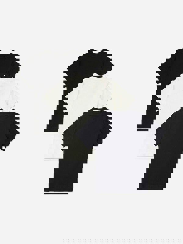 This Moncler Enfant set includes three boys’ T-shirts in black, made in Portugal. Each piece is crafted from cotton jersey, with a rib knit collar and short sleeves for an easy everyday shape. The base fabric and collar rib are both 100% cotton.