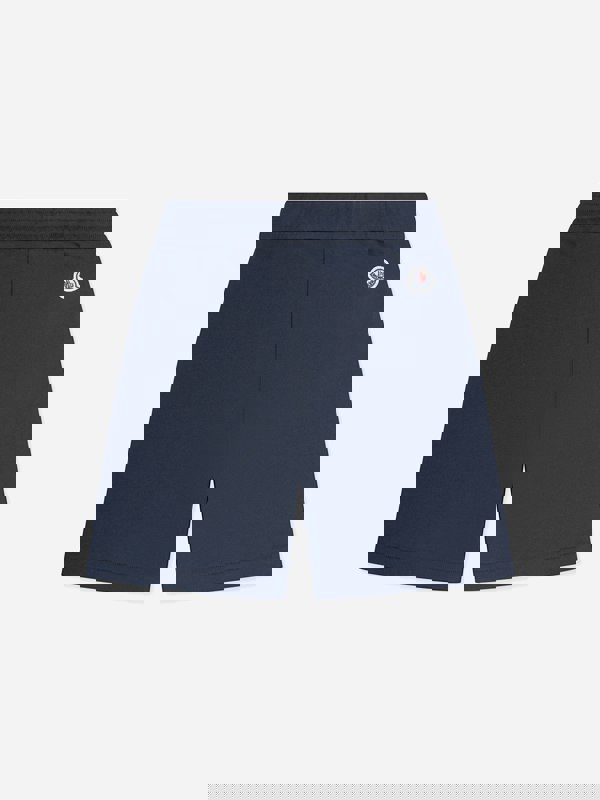 These Moncler Enfant boys bermuda shorts come in navy cotton jersey with a clean, sporty finish. An elasticated waistband keeps the shape simple and easy to wear, while red and navy side stripes add contrast. The look is completed with an iconic embroidered tag for a recognisable branded detail.