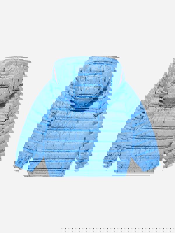 Moncler Enfant Dilar jacket for boys in blue. Down padding and stitched construction create a structured outer layer with a clean, designer finish. The bold blue colour gives a clear, modern look, while the lightweight feel supports everyday wear.