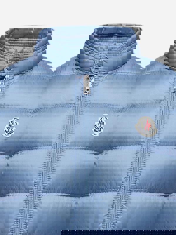 This boys’ Gui gilet from Moncler Enfant is down padded and finished in blue. The exterior and lining use recycled Longue Saison, with a lightweight polyamide/nylon construction and down-and-feather filling for insulation. Made in Bulgaria, it offers a clean, practical outerwear layer with secure fastenings and functional storage.