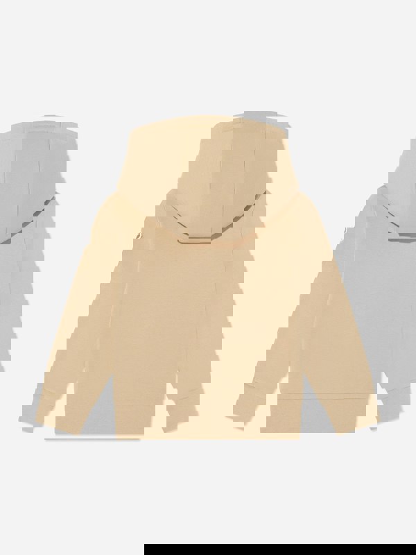 Moncler Enfant boys logo hoodie in beige. The design includes a subtly embossed Moncler emblem on the front, keeping the look clean and understated. Finished in a neutral beige tone, it works easily across everyday outfits and layering.