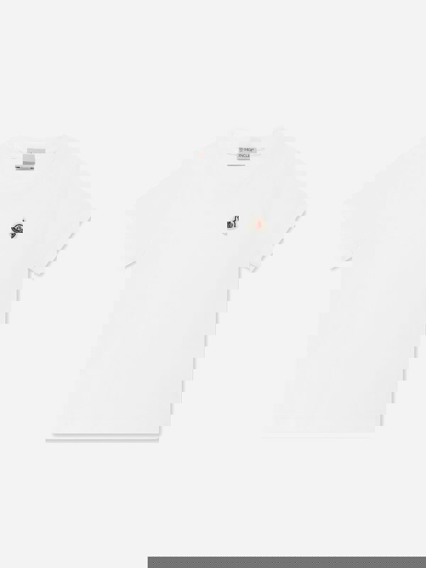 This boys’ white short sleeve T-shirt from Moncler Enfant presents a minimalist look with clean lines. Made from cotton, it has a ribbed crew neck and a straight hem for a neat finish. An embroidered Moncler tag adds a clear brand detail.