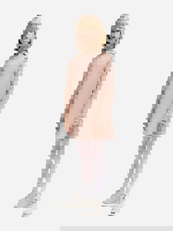 This girls’ sweater dress comes in pink and combines a soft, warm feel with a clean, everyday shape. Made in Turkey, it uses cotton fleece for the main body, with a rib knit crew neck for a neat finish. Long sleeves keep the silhouette simple and practical.