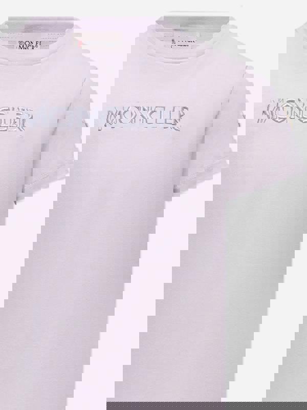 Moncler Enfant girls cotton logo T-shirt in purple for the SS2026 season. Made from cotton, it offers a simple, everyday shape with a bold colour finish. The front is embellished with the Moncler logo, adding a clear designer detail while keeping the look clean and easy to wear.