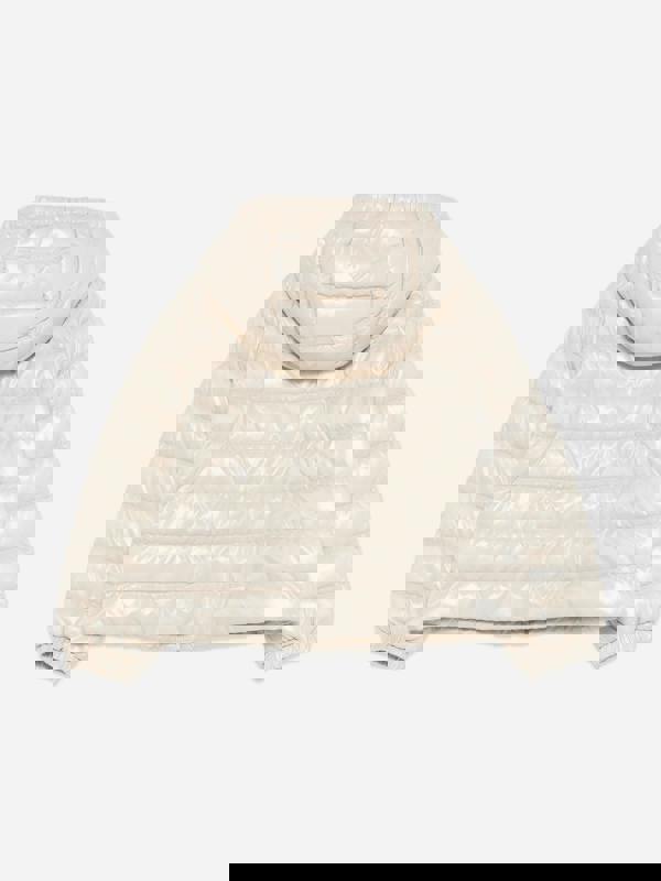 Moncler Enfant Ela jacket for girls in ivory. Down padding adds warmth and a soft, padded handle, making it a practical outer layer for cooler days. The plain ivory colour keeps the look clean and versatile, while the overall finish focuses on comfort and everyday wear.
