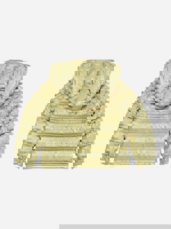 The Moncler Enfant Maire jacket is a down-filled style for girls, adapted from an iconic Moncler design. Crafted from nylon laqué with a matching nylon laqué lining, it combines a stand collar with a detachable hood for flexible wear. A full zip fastening runs through the front, while zipped pockets and a sleeve pocket with snap button closure keep the finish practical and clean.