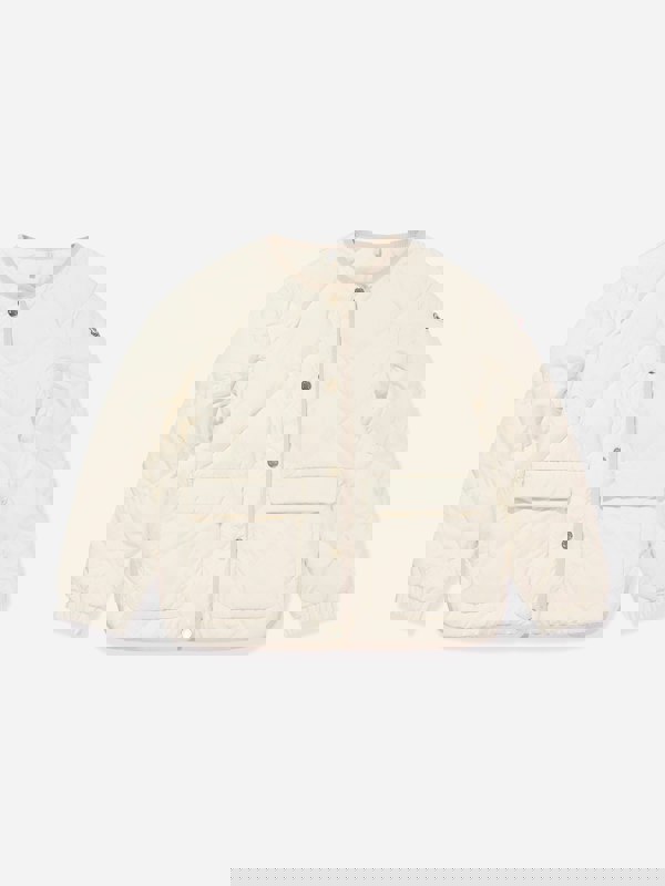 This Moncler Enfant Ursella puffer jacket for girls comes in ivory and is made in Italy. It has a diamond-quilted finish with beige trim, long sleeves and elasticated cuffs. Large front pockets add a practical detail, while a split hem shapes the silhouette. An embroidered Moncler patch sits on the outer for a clear brand sign-off.