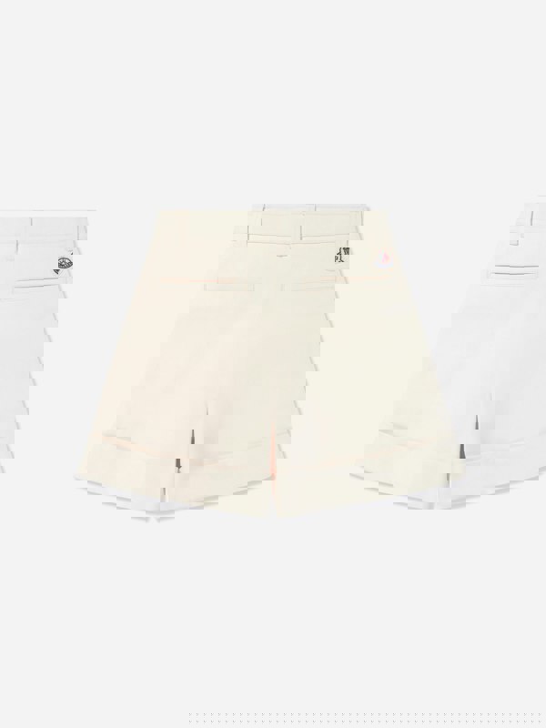 These Moncler Enfant woven shorts for girls come in an ivory finish with a cotton twill construction and lightweight twill lining. A sleek elasticated waistband sits alongside a zip and button closure for a secure fastening. Front darts add structure, while turned-up hems complete the clean, tailored look.
