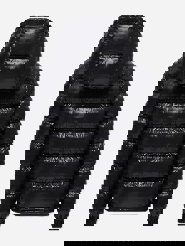 This Moncler Enfant New Aubert jacket brings a classic Moncler look to boys’ outerwear. Crafted from nylon laqué with a nylon lining, it is down-filled for added insulation. The hood is lined in nylon laqué to match the exterior, while tricolour trim adds a distinctive finish.