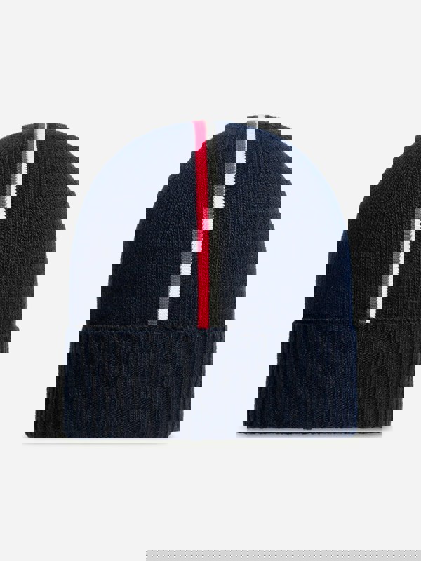 This Moncler Enfant beanie hat comes in navy and is made from 100% cotton. A ribbed knit construction and turn-up cuff give it a clean, structured look, while striped detailing adds contrast. The oval crown completes the classic beanie shape.