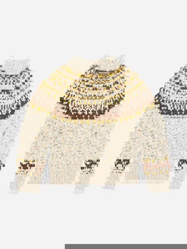 This Moncler Enfant sweater brings a distinctive knit to everyday childrenswear. The unisex design comes in a yellow, brown and cream weave, with an embroidered logo for a clear branded finish. A round neck keeps the silhouette clean and simple, while the knit construction gives the piece a textured look.