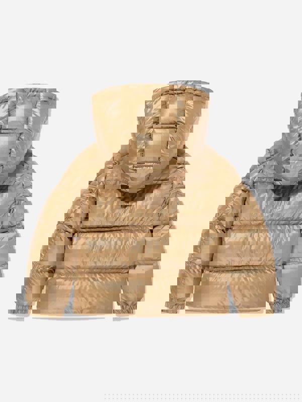 The Moncler Enfant Yule hooded down jacket combines a padded construction with practical detailing for colder months. Made in Armenia, it has a beige exterior in 100% polyester with a 100% polyester lining and hood lining. The padding is 90% down and 10% feather, with additional details padding in 100% polyester.
