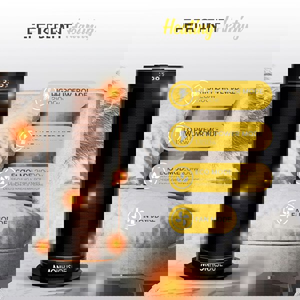 The 120-degree oscillation function was created specifically to add cosiness to the entire room! It features an exclusive trackball system that generates smooth and quiet oscillation, increasing heating coverage by 20% and allowing warm air to be distributed more evenly towards the room's corners rather than focusing only on one space- perfect for your home or office. Oscillation is just one of the remote-controlled features that you will undoubtedly enjoy.