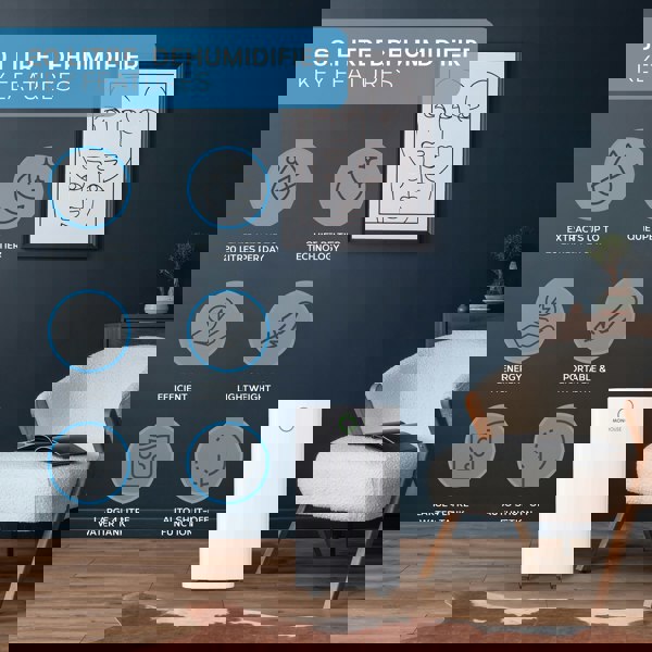 This dehumidifier comes in a range of impressive 20L daily capacities with a 4L water tank ensuring minimal hassle. The Auto Shut-Off function prevents overflow by automatically stopping operation when the water tank is full. The integrated 24-hour timer allows tailored operation to suit your schedule and optimise energy use. The auto defrost ensures continuous functionality, even in colder environments. The child lock feature prevents unintended adjustments by children.