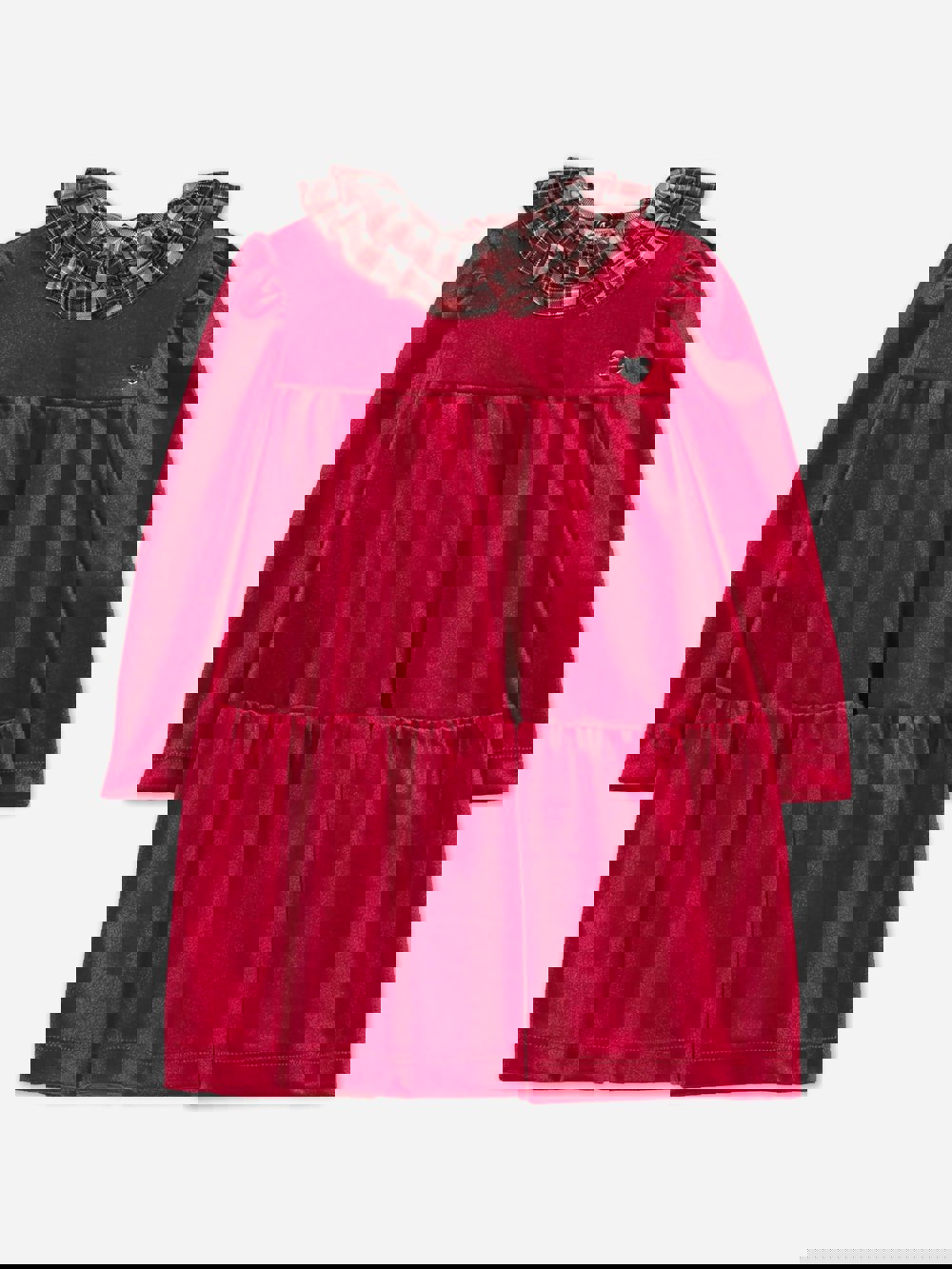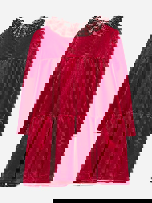 This baby girls dress in red brings a Victorian-inspired look to Monnalisa’s romantic aesthetic. Made in Italy, it is crafted in a soft material and finished with a tiered structure for added shape. A removable tartan collar adds contrast, detailed with ruffles for a decorative touch.