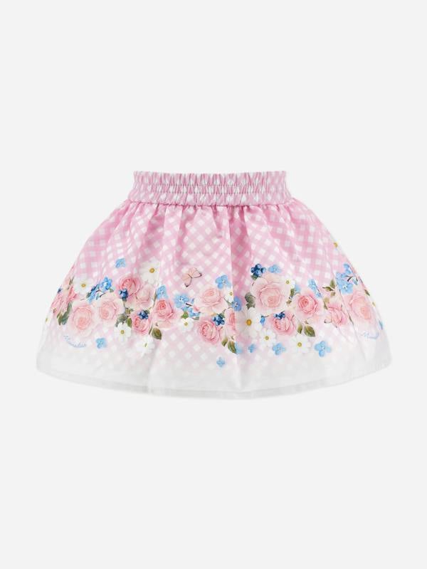 Monnalisa baby girls floral skirt in pink with an all-over floral design. Made in Italy for the SS2026 collection, this skirt brings a distinctive look to everyday outfits and special occasions.