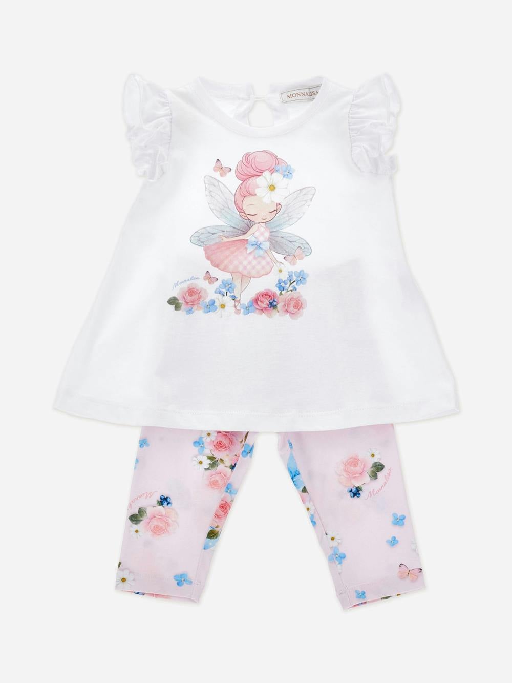 Monnalisa baby girls maxi T-shirt and leggings set in pink for SS2026. Made in Italy, this two-piece set pairs a maxi T-shirt with matching leggings for a coordinated look. The pink colourway includes playful patterns for a distinctive finish.