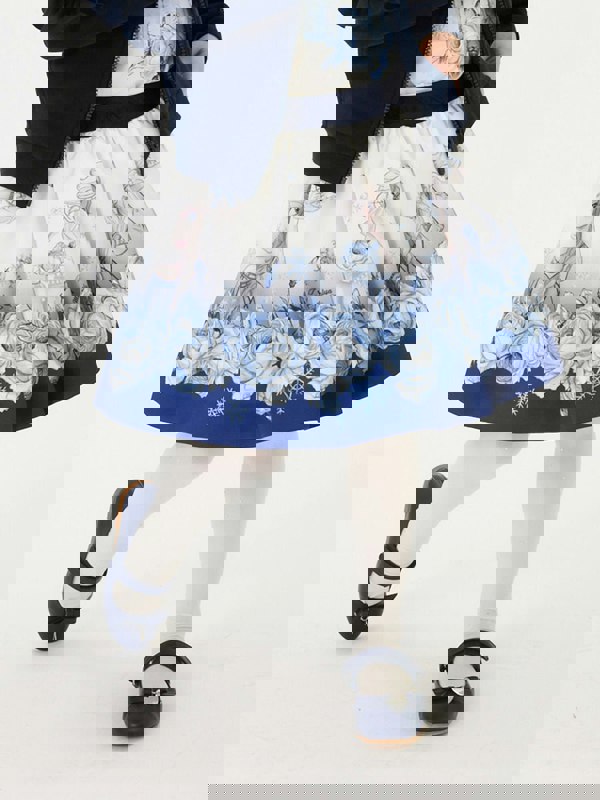 Made in Italy, the skirt uses a mikado material with a festoon print. The main fabric is 100% polyester, with a main lining in 100% cotton.