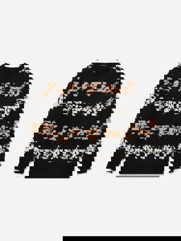 This girls’ jacquard knitted jumper from Monnalisa comes in black and brings a distinctive printed finish to a classic knit. The jacquard print creates a clear statement look, while the knitted construction keeps the design focused on everyday wear.