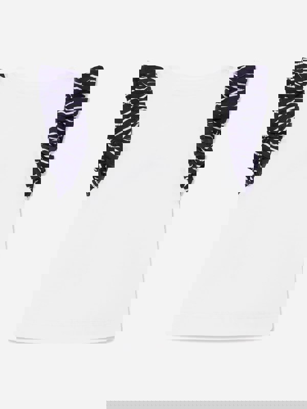 Introduce a chic addition to your little girl's wardrobe with our Girls Nautical T-Shirt in White, designed by the renowned Italian brand, Monnalisa. This graceful top effortlessly merges style with comfort for a perfect casual look. Key features include: