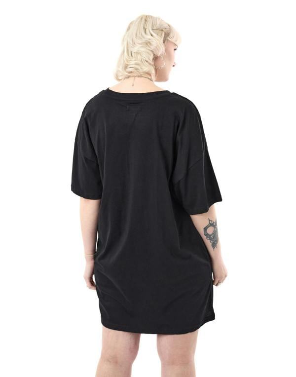 Featuring a striking spray paint graphic tee design, this dress is the ultimate goth clothing for women who dare to be different