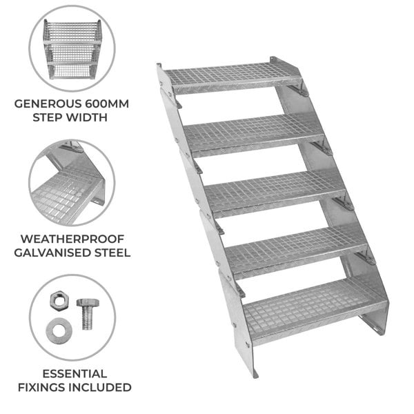 Designed with precision, each step features a spacious tread measuring 600mm wide and 240mm deep. Their robust 3mm tread bar thickness and 5mm supporting rods adds to their overall strength.