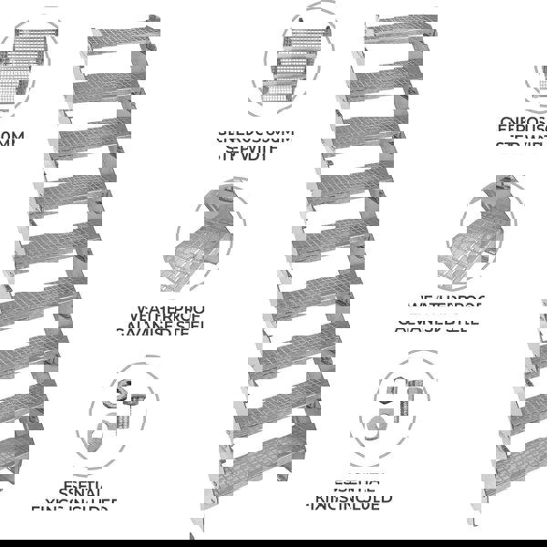 Designed with precision, each step features a spacious tread measuring 600mm wide and 240mm deep. Their robust 3mm tread bar thickness and 5mm supporting rods adds to their overall strength.
