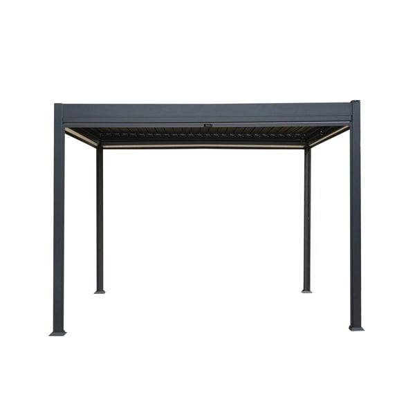 Crafted from high-grade aluminium with a sleek powder-coated anthracite grey finish, our pergola ensures exceptional strength and resilience against the elements. Whether placed on your patio, garden, or backyard, its modern design adds a touch of sophistication, becoming a captivating focal point for entertaining guests or unwinding in the open air.