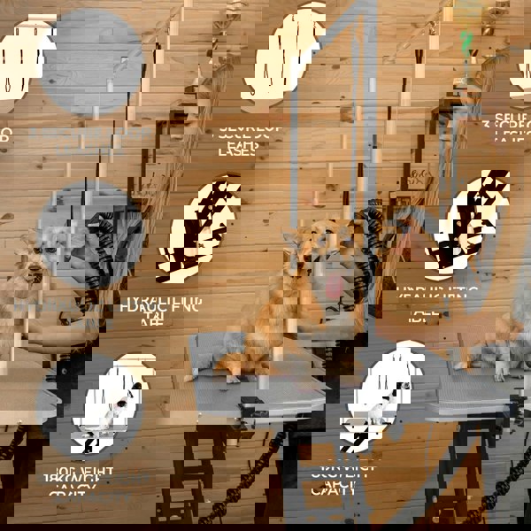 The easy-clean table surface features a non-slip PVC rubber top designed to keep animals secure and comfortable during grooming. An adjustable H bar attaches via a clamp mechanism for a firm hold and can be removed when required. For added control during sessions, the table comes with three grooming loops and secure fastenings, helping you keep pets safely positioned while you work.