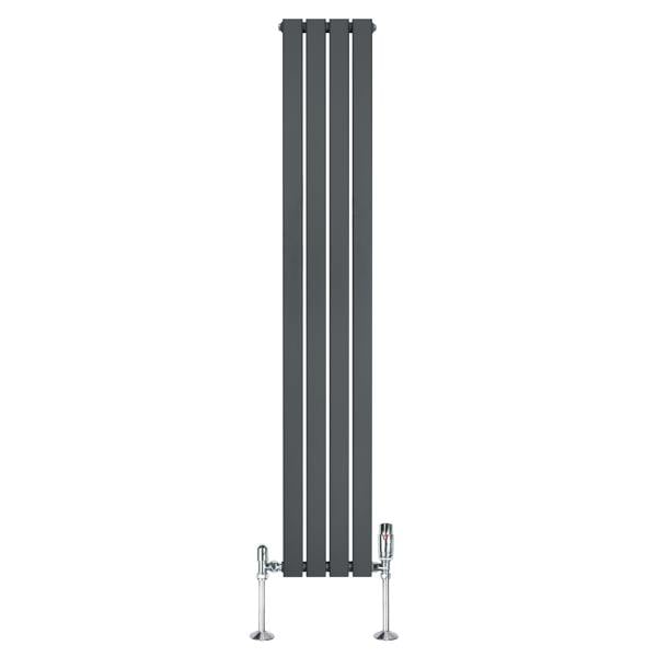 A bold, architectural update for modern interiors, the Monstershop Flat Single Column Radiator & Valves set pairs an anthracite grey radiator with a polished chrome thermostatic valve set. Measuring 1800mm x 280mm, it brings a tall, slim profile that suits a wide range of spaces while keeping the look clean and contemporary.
