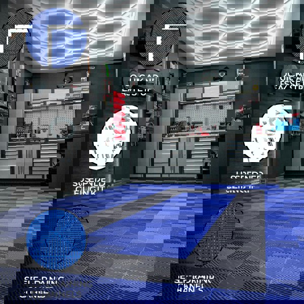 Transform your garage, workshop, or gym into a practical and visually stunning space with our premium vented garage floor tiles and innovative hexagon LED lighting bundle. This all-in-one solution combines strength, style, and functionality for a space you'll love to work in or show off.