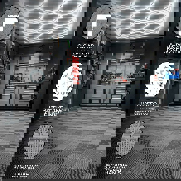 Transform your garage, workshop, or gym into a practical and visually stunning space with our premium vented garage floor tiles and innovative hexagon LED lighting bundle. This all-in-one solution combines strength, style, and functionality for a space you'll love to work in or show off.