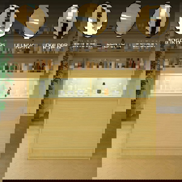 Constructed from high-quality MDF with a durable melamine finish and toughened glass panels, the B1200 counter is built for lasting performance in busy commercial settings. The bright white LED lighting adds a crisp, professional glow to your display items, ensuring that products are showcased to their best advantage even in lower-light conditions. The counter’s clean maple exterior enhances its premium look, making it a refined addition to both contemporary and classic store layouts.