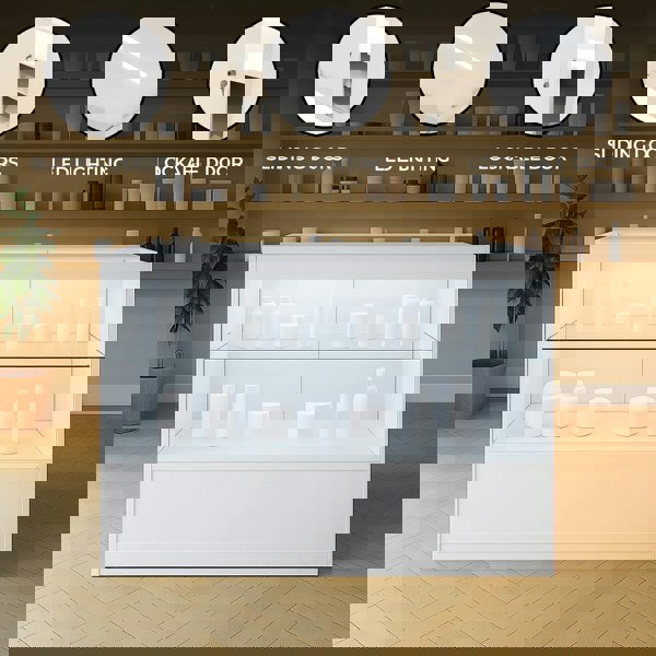 Constructed from high-quality MDF with a durable melamine finish and toughened glass panels, the C1200 counter is built for lasting performance in busy commercial settings. The bright white LED lighting adds a crisp, professional glow to your display items, ensuring that products are showcased to their best advantage even in lower-light conditions. The counter’s clean white exterior enhances its premium look, making it a refined addition to both contemporary and classic store layouts.