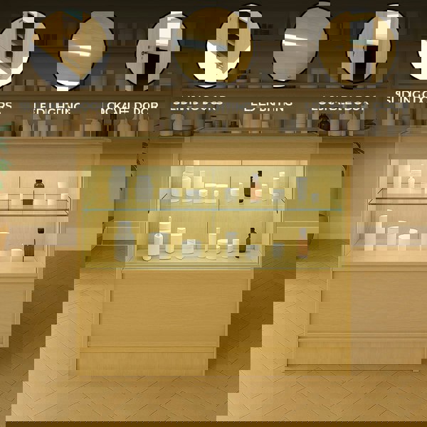 Ideal for retail settings such as clothing boutiques and jewellery shops, this elegant display counter is crafted to catch the eye while providing secure and efficient product presentation.