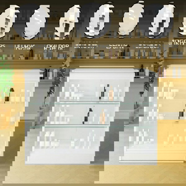 Storage and display needs are thoughtfully balanced in this design. The cabinet features three shelves, all enclosed in a solid glass front panel, allowing every shelf and its contents to be clearly on display - perfect for highlighting feature items. Two lockable sliding doors at the rear, supplied with two keys, offer secure access to your stock while maintaining a streamlined appearance from the customer’s viewpoint.