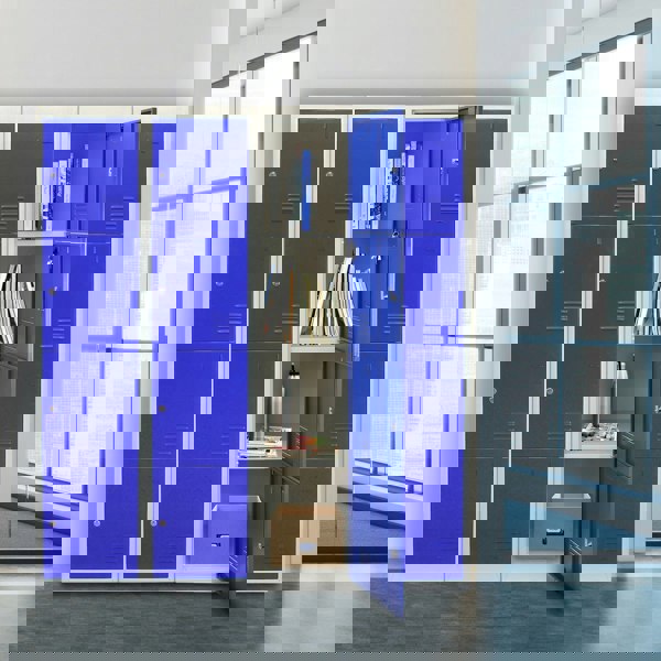Offering space & security for four people, these metal lockers can be used separately or inside a locker room system – just buy two or more units to create your own office, gym or school changing room lockers.