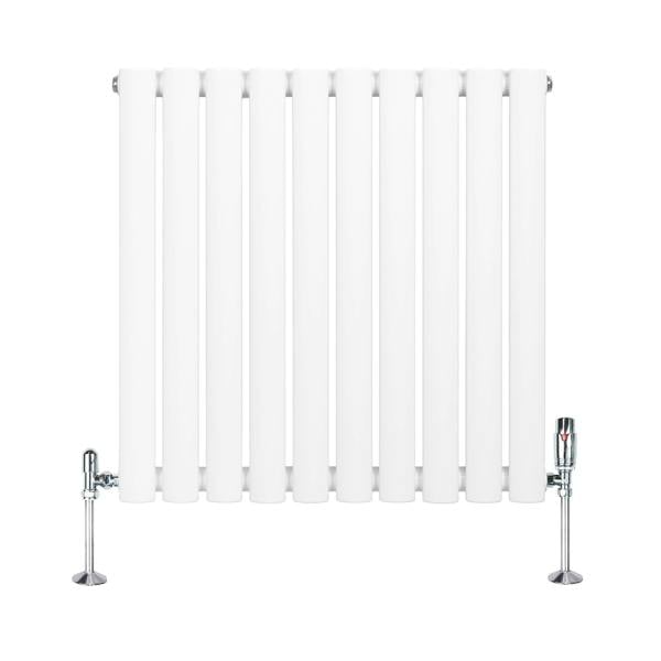 A clean, architectural look meets practical control with the Monstershop Oval Single Column Radiator & Valves set. Finished in white with a triple layered powder coating, this 600mm x 600mm radiator brings a crisp, contemporary presence to a wide range of interiors, while the included polished chrome thermostatic valve set adds a refined contrast.