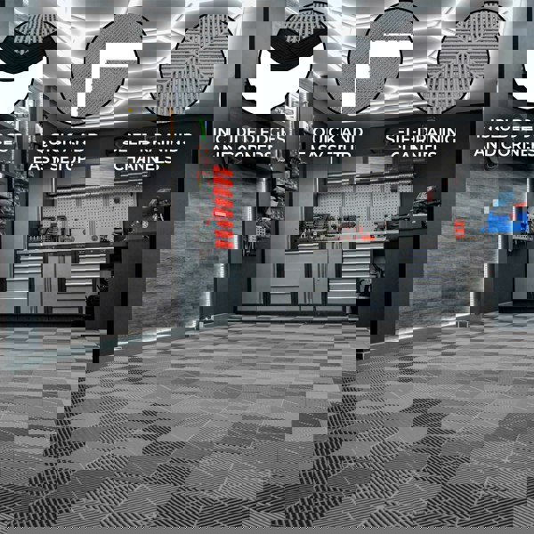 Not only is this flooring protective, but it also enhances the look of your space. The sleek grey tiles lend a clean, modern aesthetic that elevates any garage or workshop, making it a place you’ll be proud to show off or spend time in. Maintenance is effortless - just sweep or rinse as needed to keep your tiles looking like new.