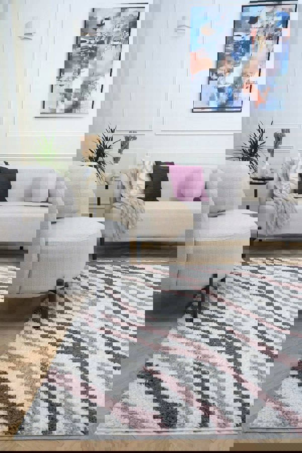 Bring contemporary flair and cosy comfort into your home with the Moodi Shaggy Grey/Purple Mauvine Rug. Its abstract design in soft grey and purple tones, paired with a thick 30 mm high pile, adds texture, warmth, and visual interest to any space.