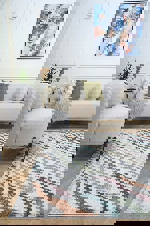 Add colour and modern texture to your home with the Moodi Shaggy Multicolour Tidecrest Rug. Its abstract multicolour design and 30 mm high pile create a cosy, vibrant feel that brightens any room while remaining soft underfoot.