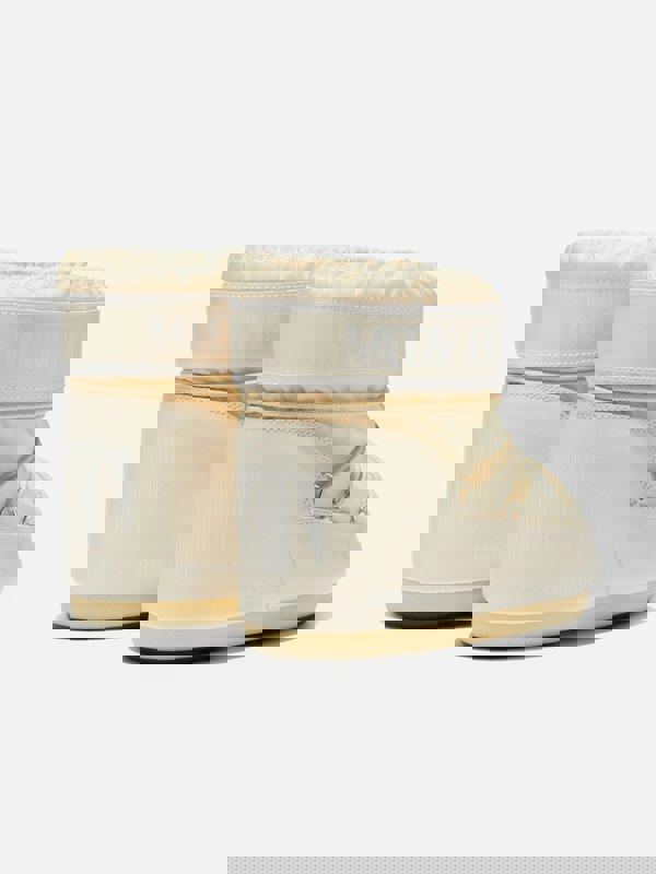 Moon Boot Girls Icon Low Boots in ivory reinterpret the brand’s 1969 moon landing inspiration in a low-top snow boot silhouette. This updated version keeps the focus on innovative, otherworldly concepts, with an insulated build and foam lining for added internal comfort. A lightweight mid sole supports everyday wear, while the rubber tread sole adds grip underfoot.