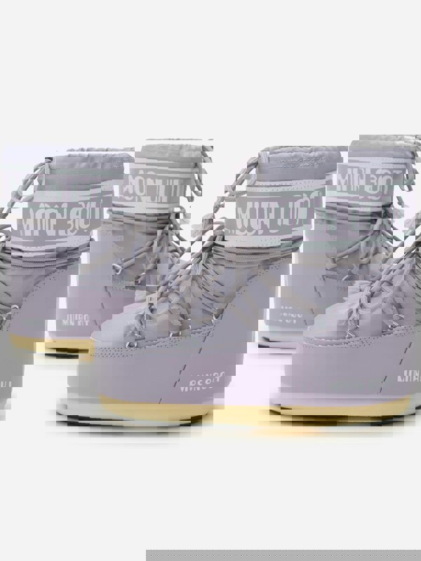 Moon Boot Girls Icon Low Boots reinterpret the brand’s 1969 moon landing inspiration in a low-top snow boot silhouette. This purple pair combines a lightweight mid sole with an insulated build and foam lining for a practical cold-weather option. Suction pads and a rubber tread sole add grip-focused detailing, while the adaptable construction keeps the finish versatile for winter wear.