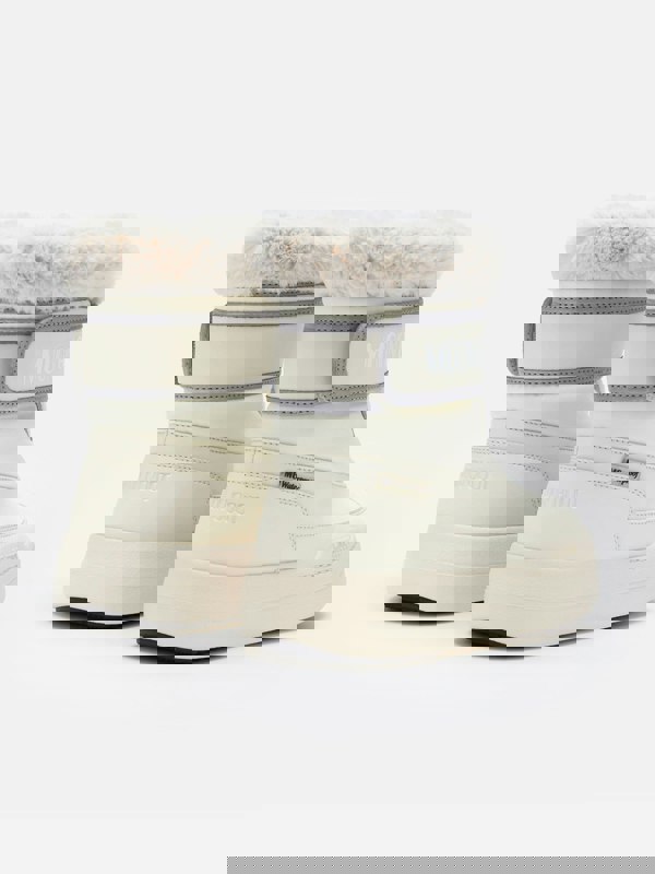 Moon Boot Girls JR Park Strap Boots in ivory bring a clean, modern look to AW2024. The ivory finish keeps the design simple and versatile, while the strap fastening adds a practical touch for everyday wear. A soft interior lining provides added comfort and warmth, making them a suitable option for colder days.