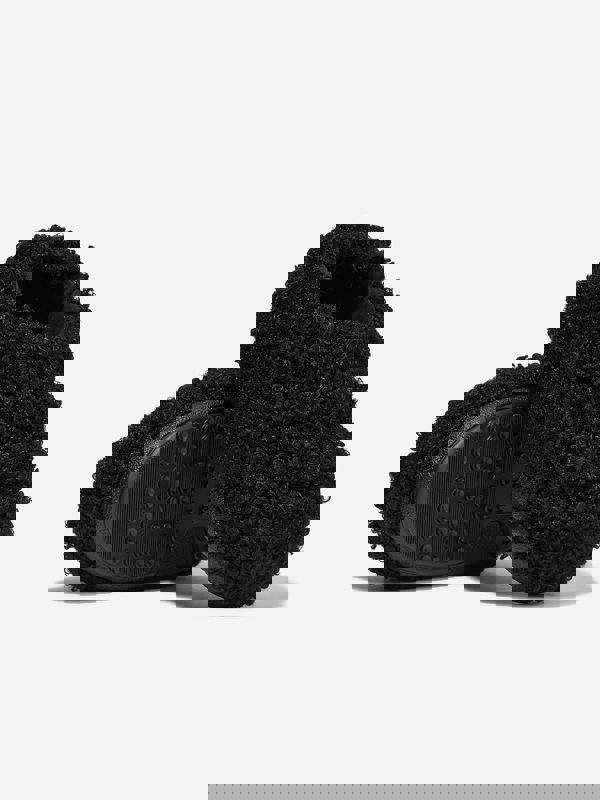 These Moon Boot kids sandals in black combine a faux curly sandal band with a slip-on shape and an elasticated slingback strap. A water-repellent coating and foam lining add comfort-focused detail, while the tread sole includes suction pads for grip.