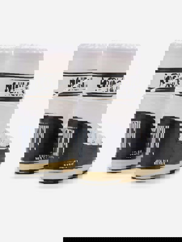 Moon Boot Kids Icon Boots in white reinterpret the label’s iconic moon landing inspiration in a scaled-down snow boot style. A 100% water-repellent nylon upper is paired with PVC trim and a PVC heel counter for a structured finish. Inside, foam lining adds a cushioned feel, while a thermoplastic midsole supports the shape through wear.