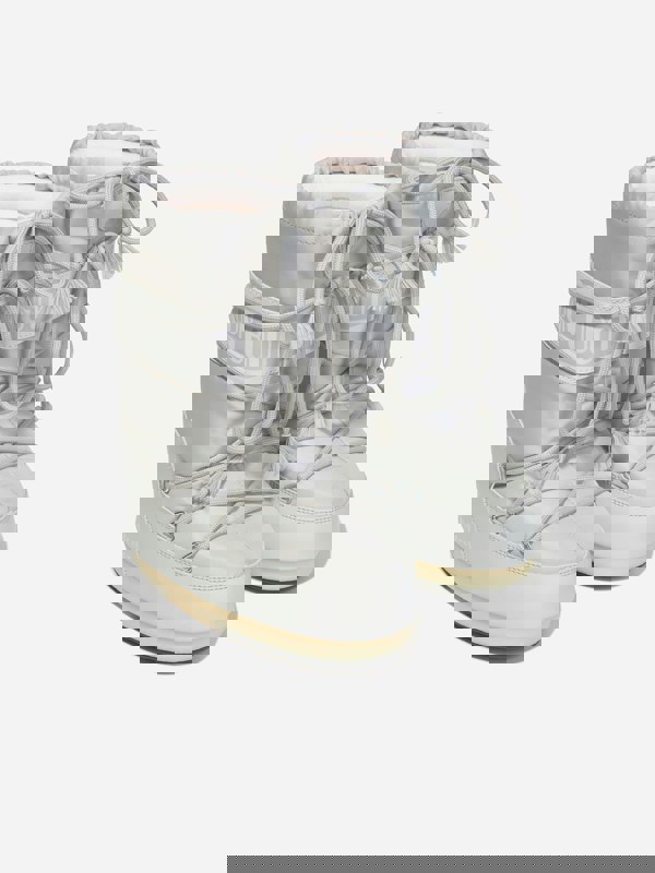 Moon Boot Kids Icon Nylon Snow Boots in grey reinterpret the brand’s moon-landing inspiration in a distinctive, futuristic silhouette. Made in nylon with water-repellent properties, this gender-neutral style includes a slip-on construction with a drawstring at the top for a secure finish. A logo-print panel adds a clear brand detail, while silver-tone metal eyelets and criss-cross tubular laces complete the upper.