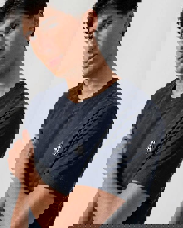 Clean lines and subtle branding define the Moose Knuckles Crescent Mens T-Shirt in navy 833. Cut in a regular fit, it brings a pared-back look to everyday casual wear, finished with a rib knit collar for a neat neckline. Branding is kept small and placed across the garment for a considered, understated finish.