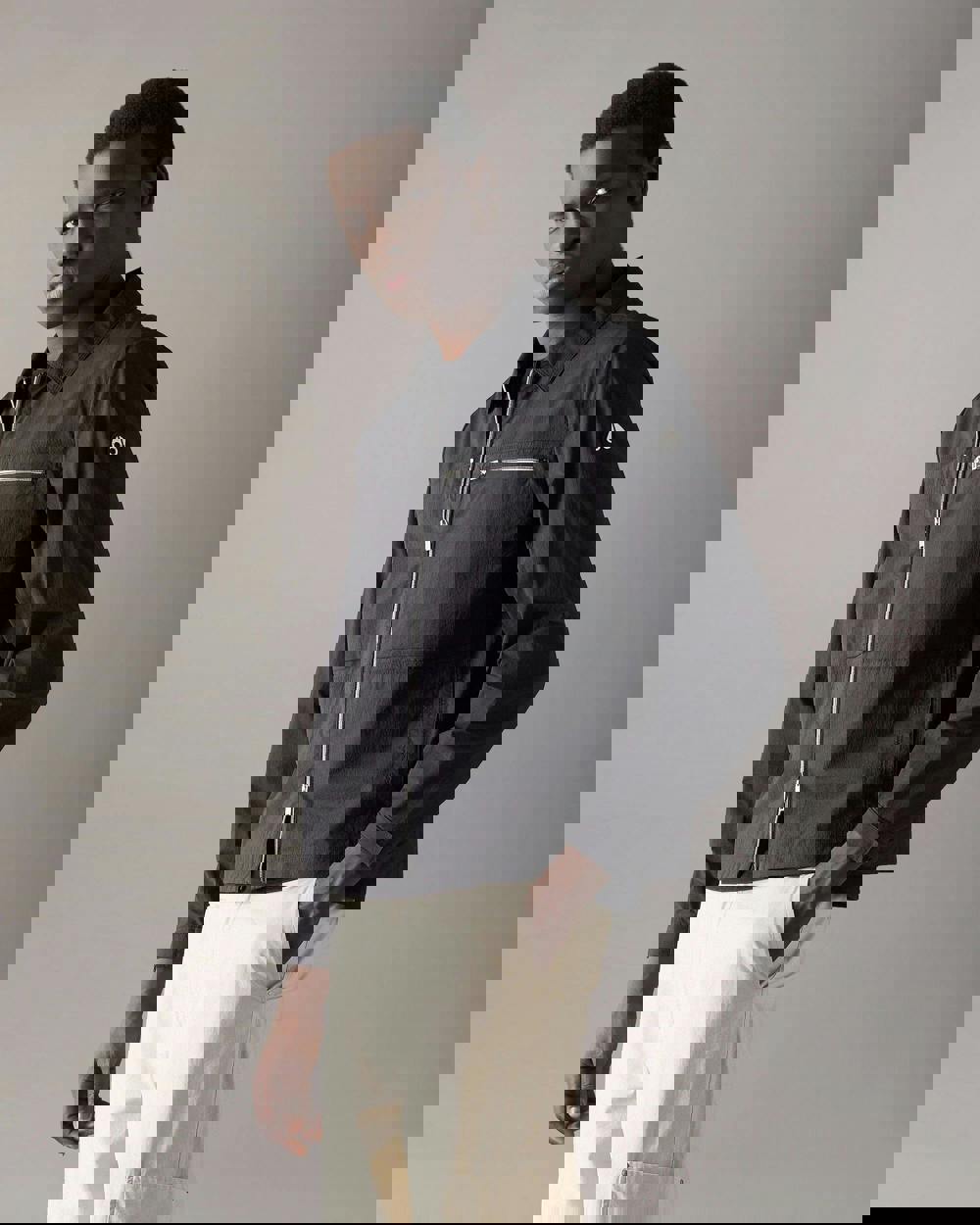 Clean lines and technical detailing come together in the Moose Knuckles Topflight men’s overshirt in black. Styled as a shirt jacket, it’s made in an ultralight crinkle material blend and finished with a shirt collar for a structured look that layers easily.