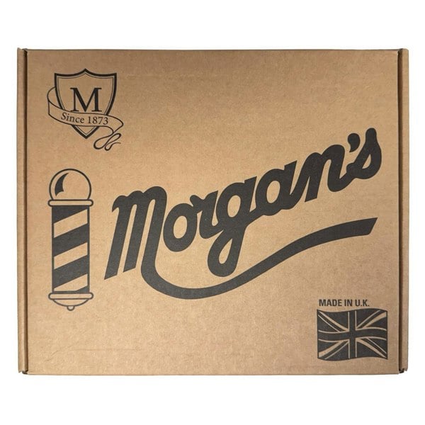 Morgan's Gentlemen's Beard Grooming Gift Set containing a Beard Wash 100ml, a Beard & Moustache Wax 50g, a Beard Softening Elixir 30ml, a large beard brush and a large folding beard comb all in a Morgan's presentation gift box.